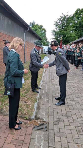 Am 26.07.22 waren wir mit einer großen Abordnung bei bestem Wetter bei unseren Nachbarn in Holtum auf dem Kreisverbandsschützenfest zu Gast.