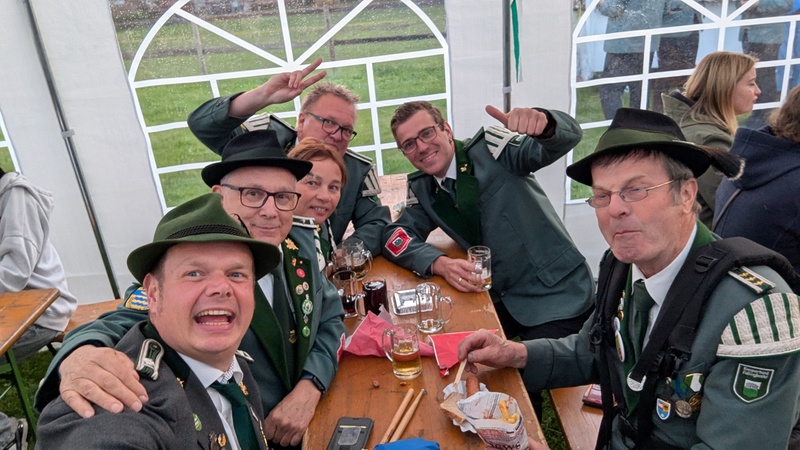 Leider öffnete der Himmel immer wieder seine Schleusen, worauf die Schützen/innen länger als geplant auf Ihren Ummarsch waren. Dies sollte der guten Laune aber keinen Abbruch zollen. So ging der Freitag bis spät in die Nacht.