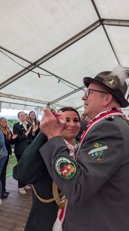 In diesem Jahr wurde endlich wieder auf dem Zelt gefeiert – und mit dem Wetter hatten die Waller auch Glück. Zahlreiche Besucher aus Walle und Umgebung sorgten für ein volles Haus und gute Stimmung an allen Tagen. Der Freitag begann traditionell mit der feierlichen Abholung der scheidenden Majestäten. In Begleitung des Spielmannszuges wurden die ehemaligen Würdenträgerinnen und Würdenträger zu Hause abgeholt – ein bewegender Moment, der Stolz und Dankbarkeit für das vergangene Regentschaftsjahr zum Ausdruck brachte. Anschließend versammelten sich Gäste und Schützen im festlich geschmückten Zelt, wo die Eröffnungsfeier des Schützenfestes mit Musik, Tanz und bester Laune begangen wurde.