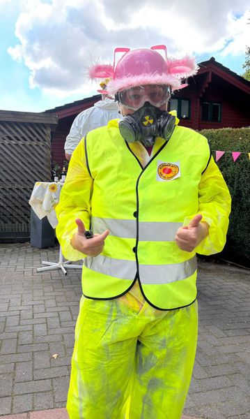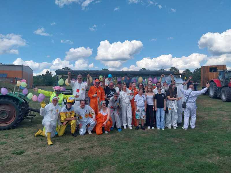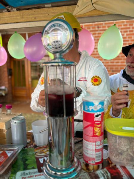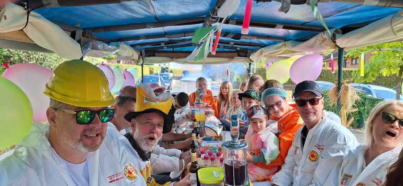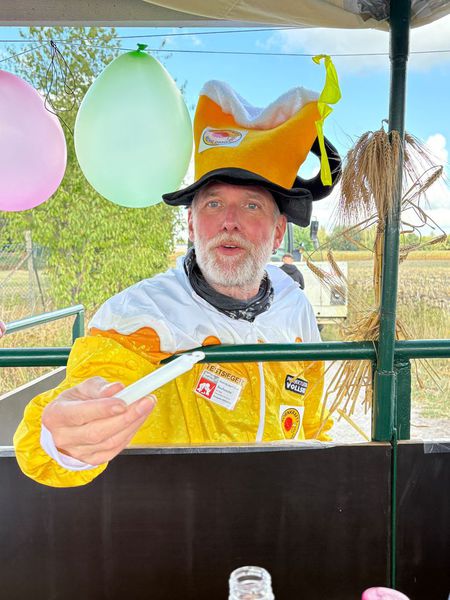Mehrere Stunden wurde mit einer Gruppe der Wagen geschmückt. Dies soll ja nicht alles sein, auch die Mitarbeiter des Kornkraftwerkes sollten dementsprechend gekleidet sein. Dafür war jeder Mitarbeiter selbst verantwortlich sich fachgerecht einzukleiden.