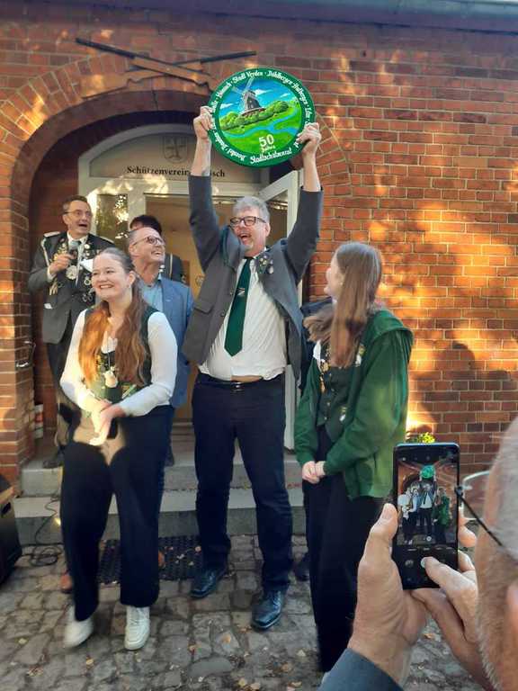 Ein besonderer Höhepunkt war der Gewinn der Jubiläumsscheibe "50 Jahre Stadtkönigschießen", die anlässlich des Jubiläums gestiftet wurde. Diese besondere Auszeichnung konnten Stephan Aschmies, Alida Witte und Ann-Katrin Witte gemeinsam für den Verein nach Hause holen – ein großartiger Erfolg und ein Beweis für die hervorragende Schießleistung der Waller Mannschaft.