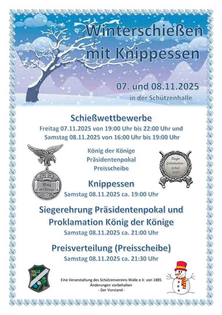 Am 20.01.23 folgten die Waller Schützen/innen den Ruf zur Jahreshauptversammlung.